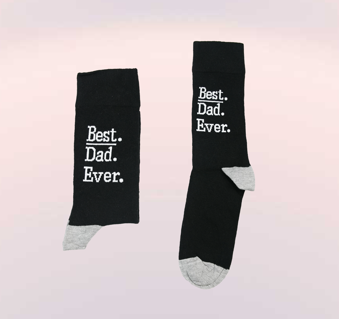 Renkler: Çorap siyah renktedir. Desen: Çorabın üzerinde "Gelmiş geçmiş en iyi baba" yazmaktadır. Türü: Çorap, diz üstü değil, daha kısa... Daha Fazla Oku