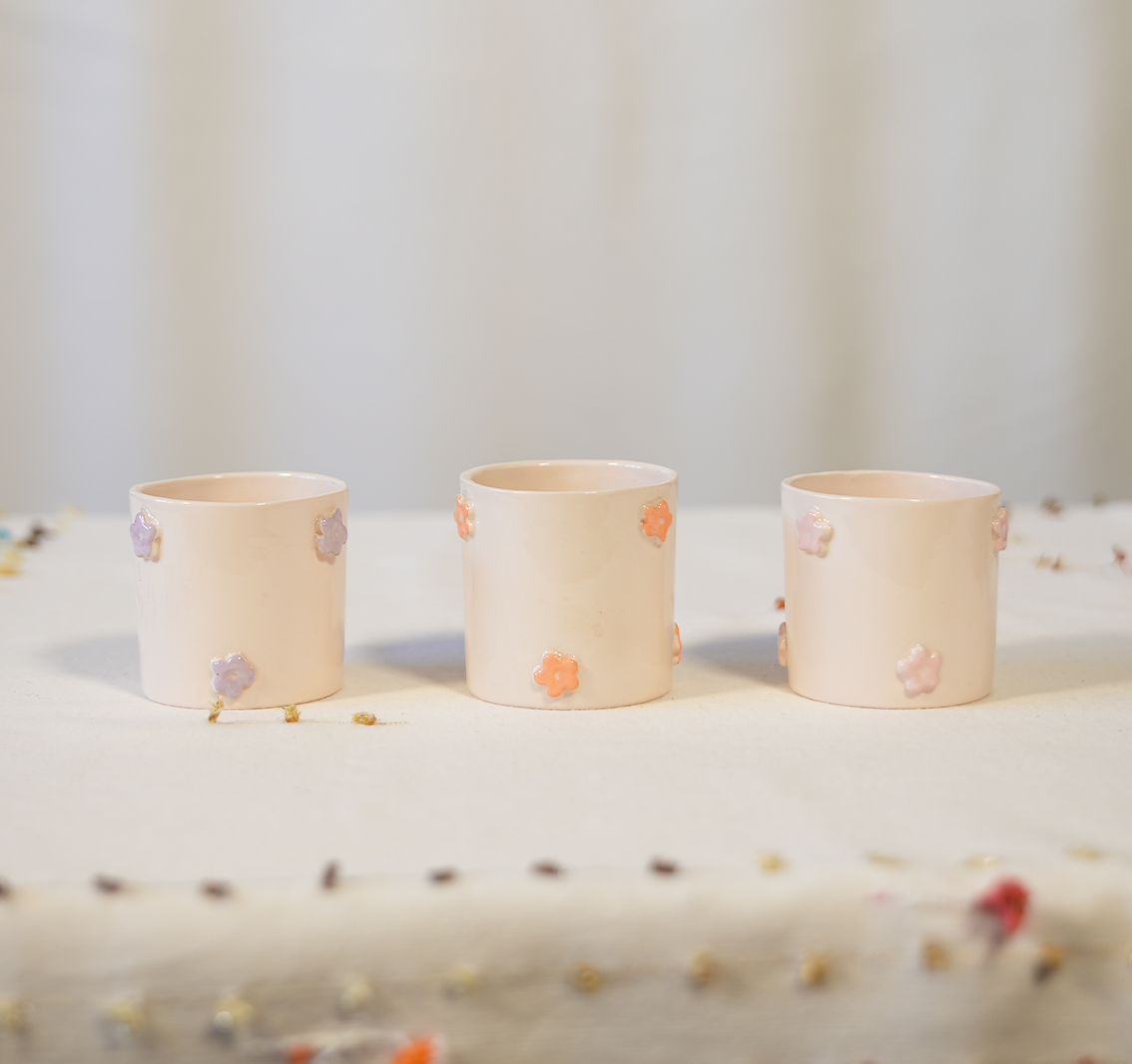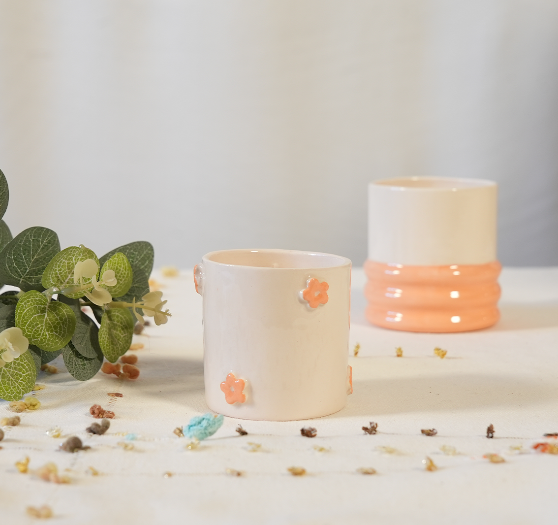 Çiçekli Seramik Kahve Fincanı Turuncu