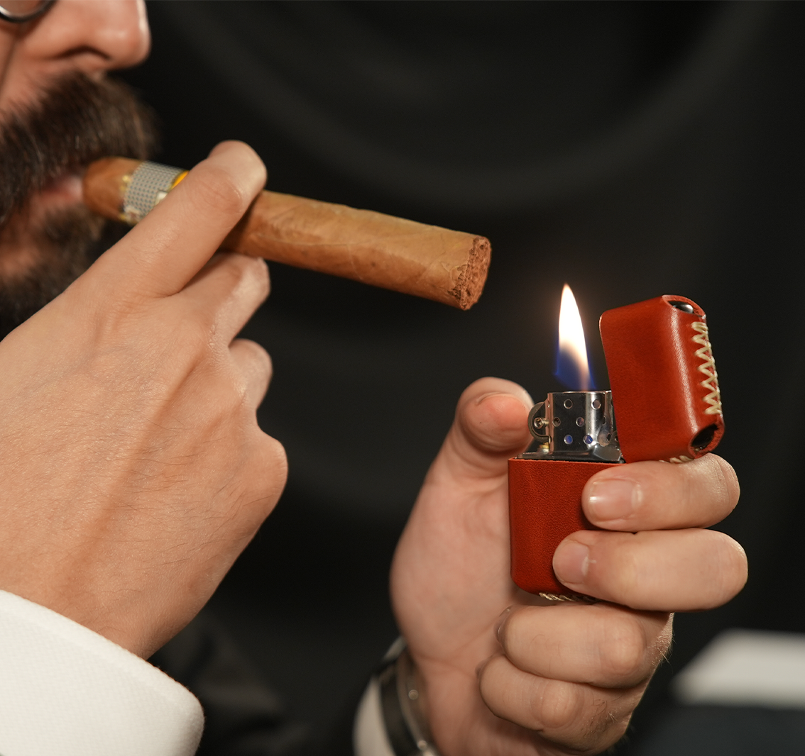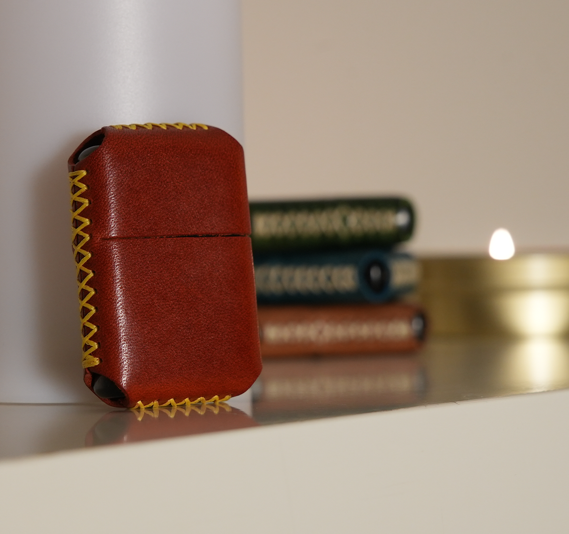 Hakiki Deri El Yapımı Kırmızı Deri Kılıflı Zippo Çakmak