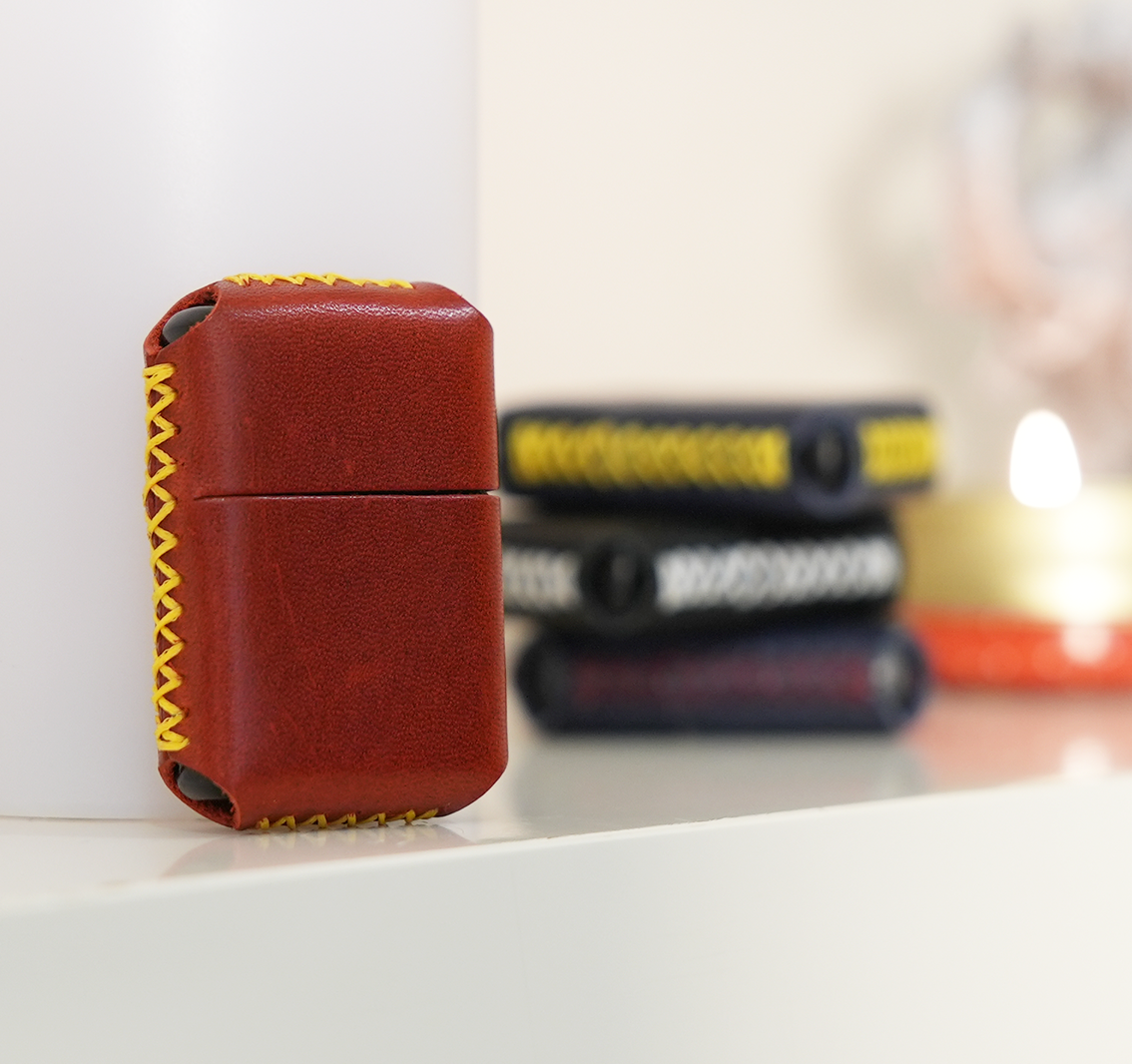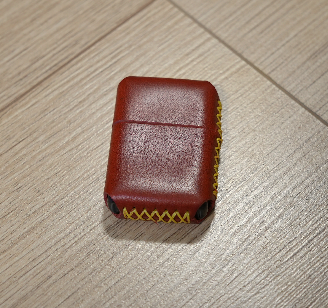 Hakiki Deri El Yapımı Sarı Kırmızı Deri Kılıflı Zippo Çakmak