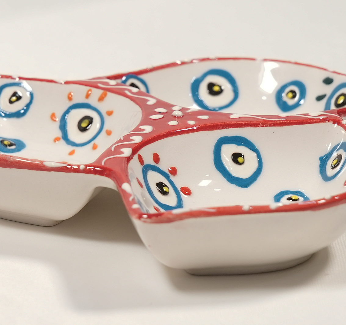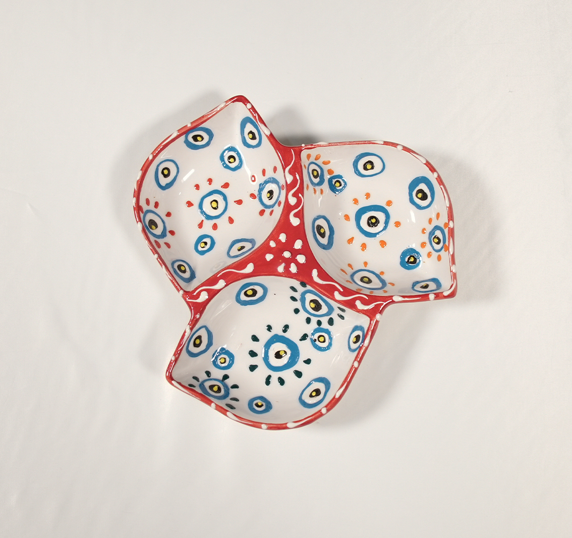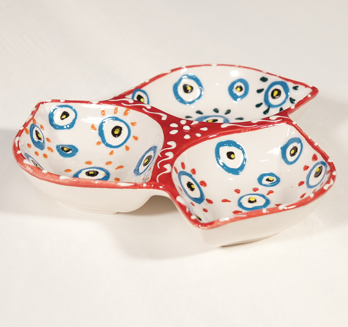 Kırmızı Nazar Boncuklu 3 Bölmeli Çerezlik Sunumluk