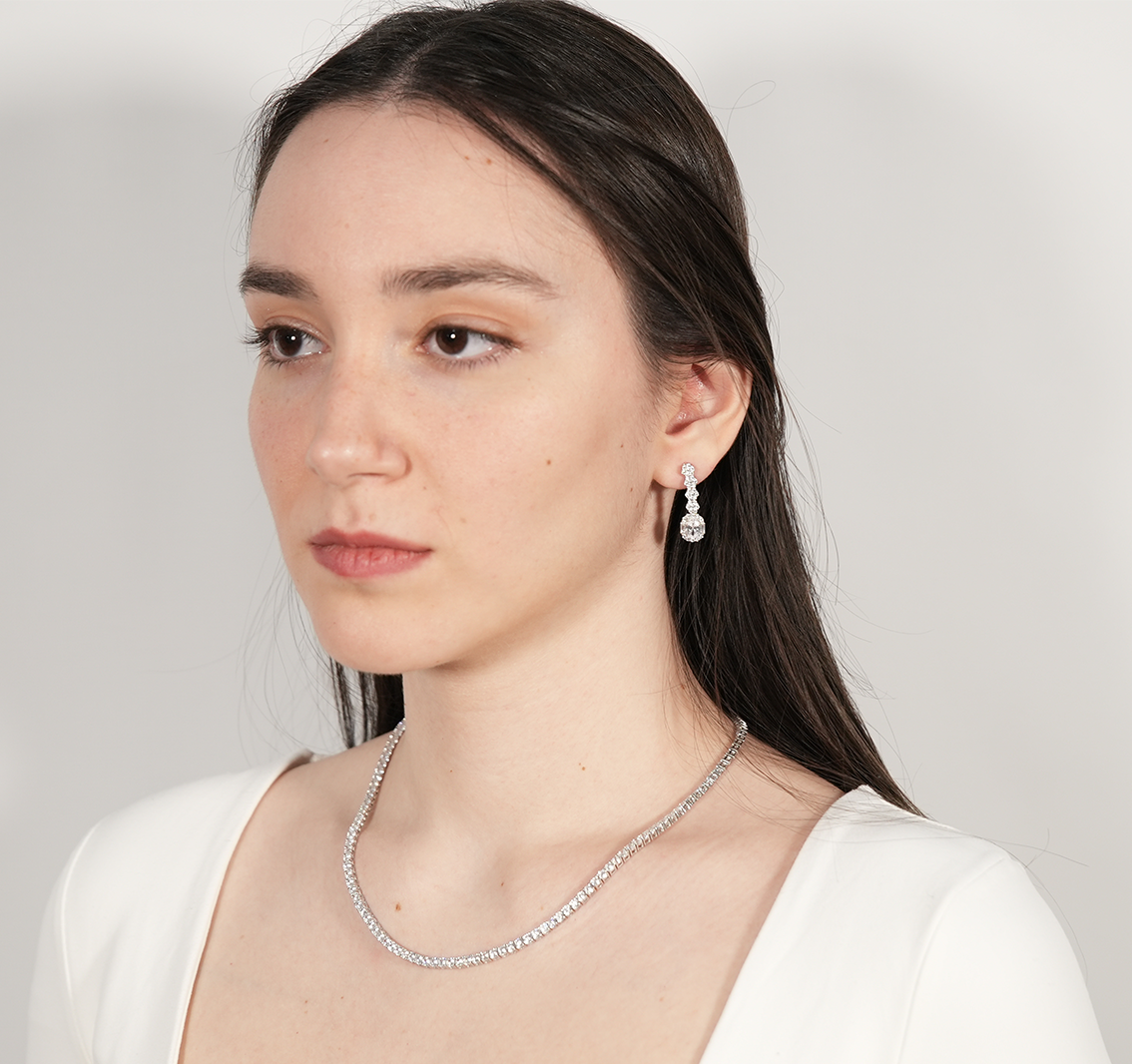 Pırlanta Modeli Su Yolu 925 Ayar Gümüş Zincir Kolye