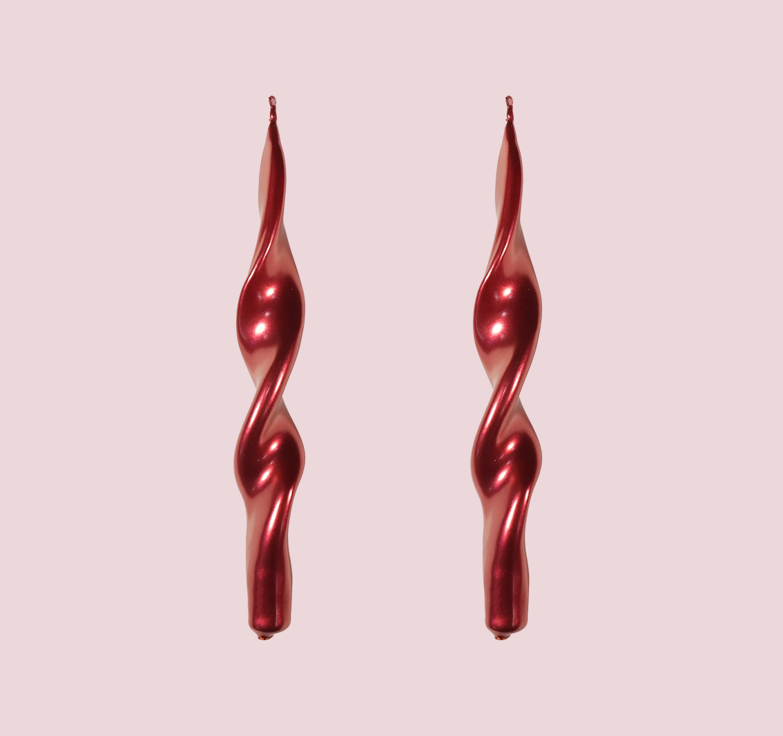 Şamdan Mumları Kırmızı Kıvrımlı (2'li)