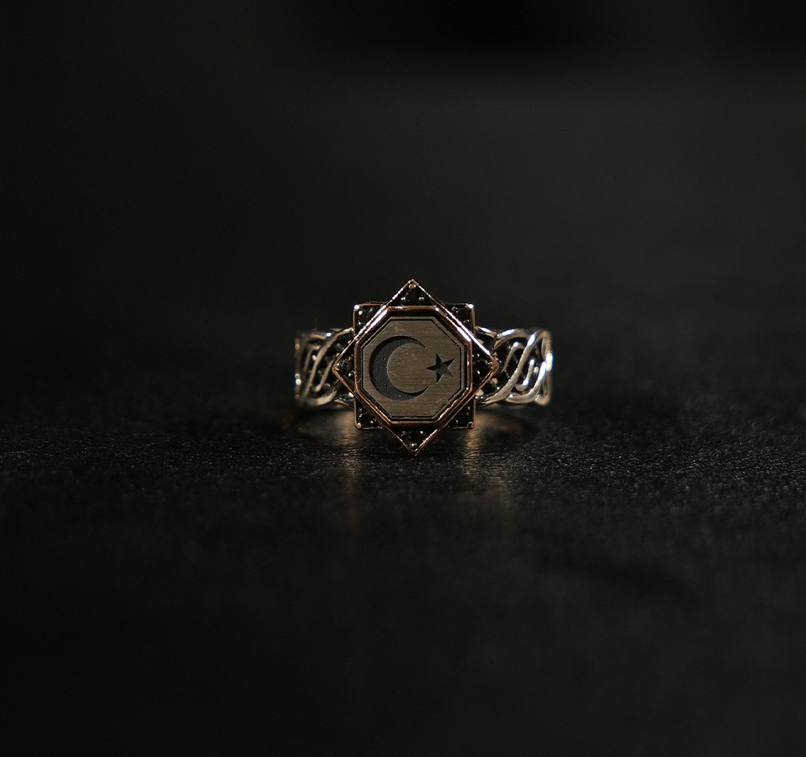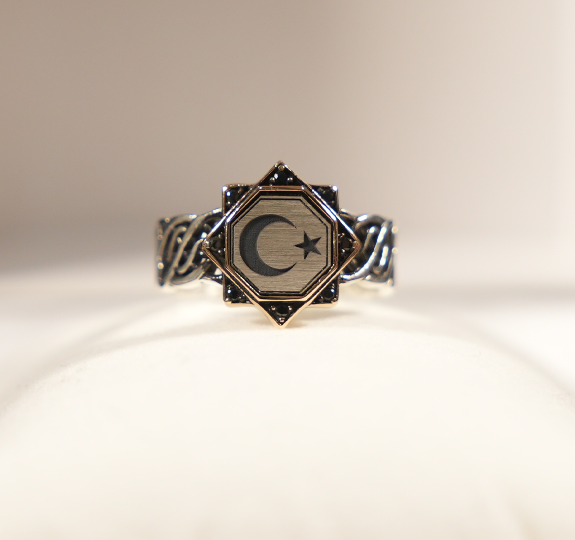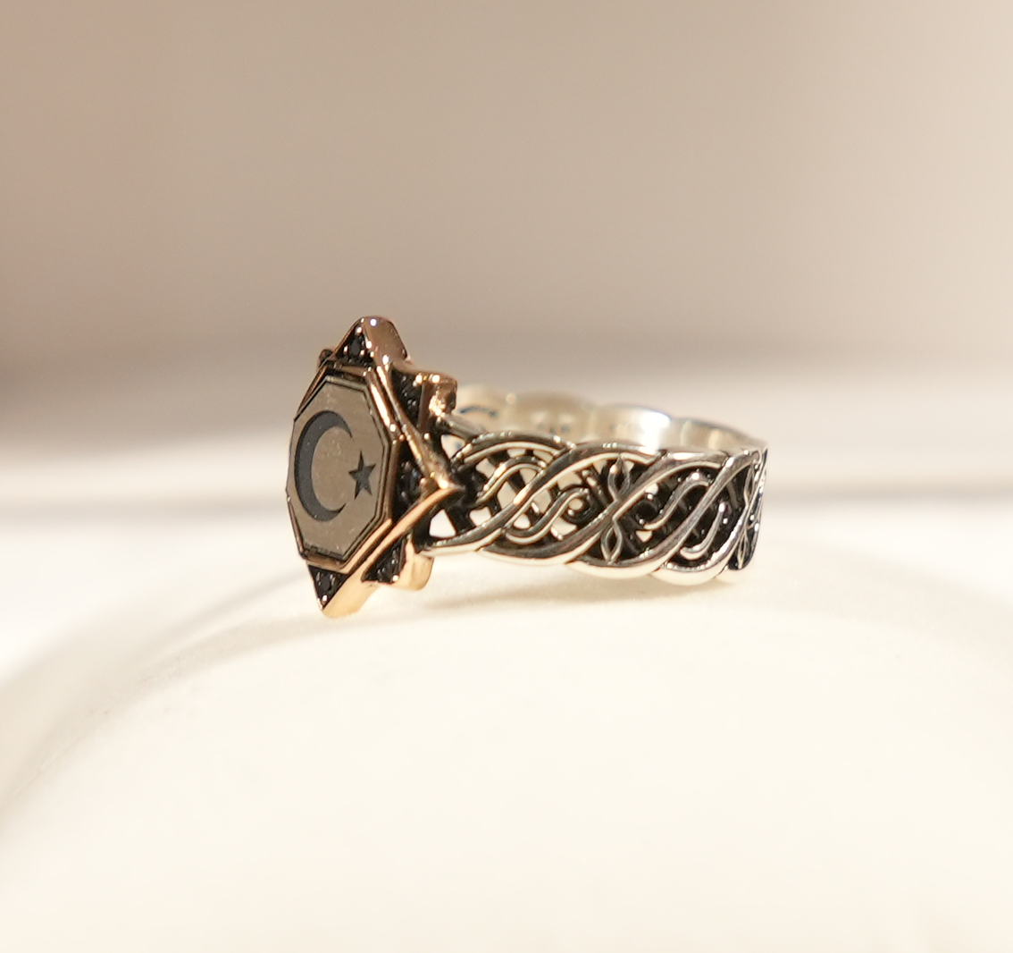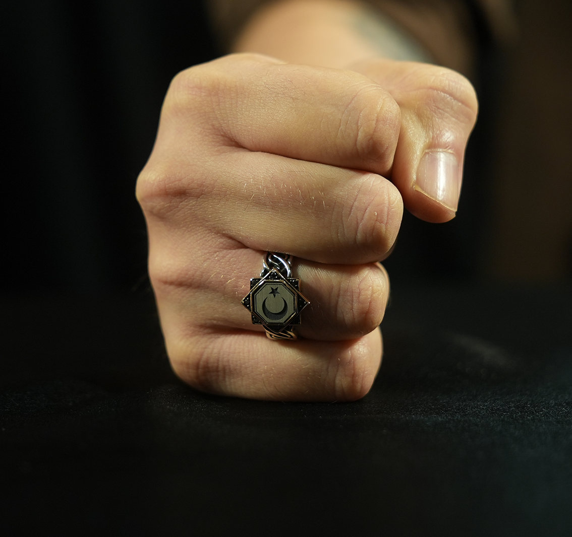 Selçuklu Yıldızı İçinde Türk Bayrağı 925 Ayar Gümüş Yüzük