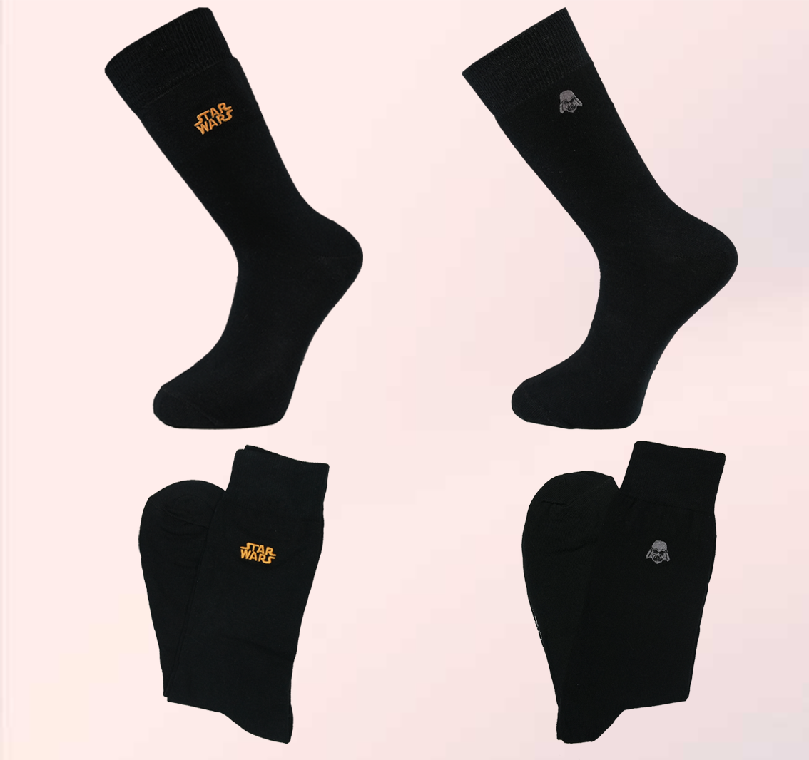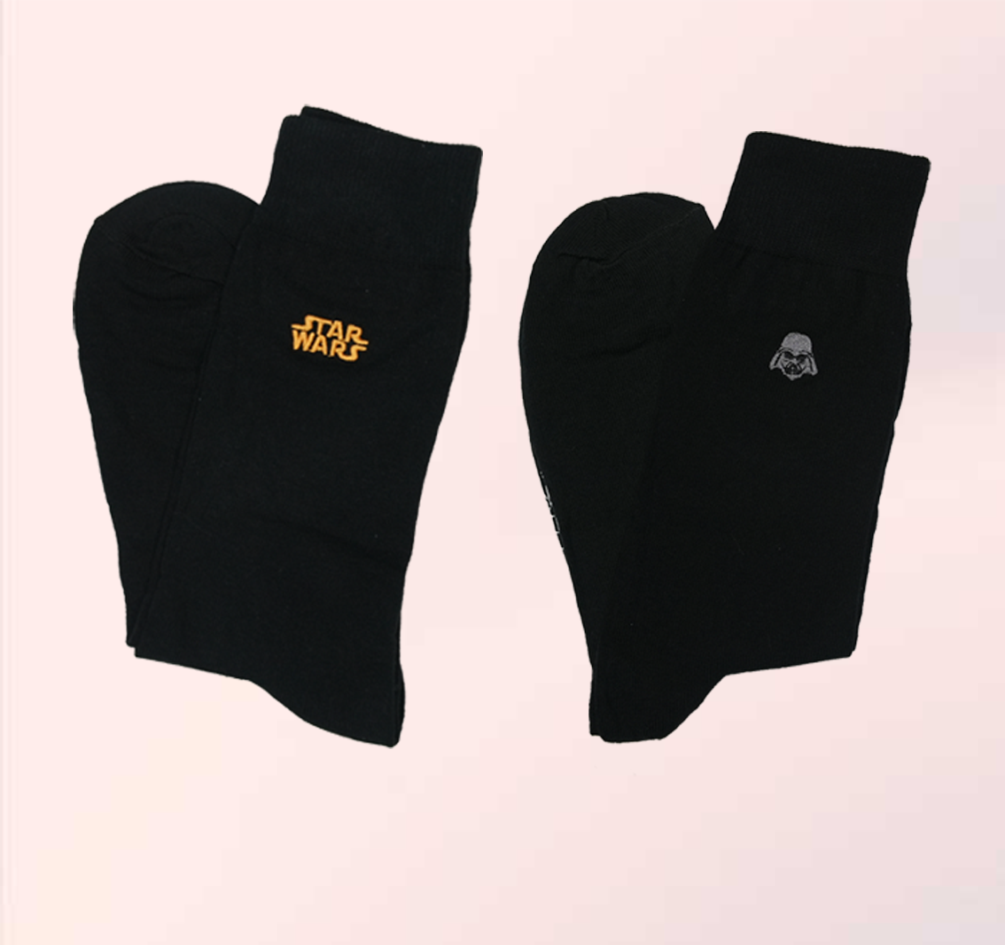 Renkler: Çorap siyah renktedir. Üzerinde "Star Wars" nakış işlemesi vardır.